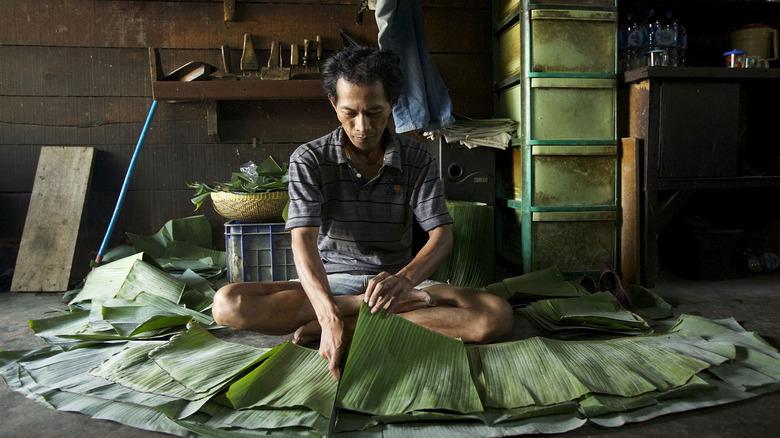 In Indonesia, making tempeh is a tradition — one that's been carried on through centuries with time and care. As Rustono, a tempeh producer from Java, Indonesia, told Good News From Indonesia, "The mold in tempeh breathes and grows, so Indonesians who make it take care of it like their children." After rinsing the soybeans in water and boiling them, they are soaked overnight, cut in half, and hulled to remove their outer coverings (via Bon Appétit). Then, they're mixed with a fungus called Rhizopus oligosporus – which grows on the leaves of Javanese hibiscus and teak trees — a starter fungus, or rice yeast, to ferment.