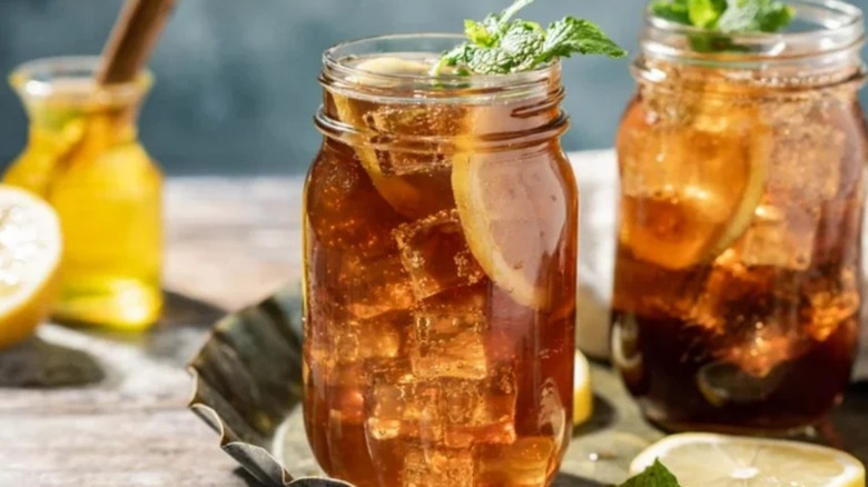 A single serving of Tasting Table recipe developer Michelle McGlinn's Long Island Iced Tea Recipe consists of half-ounce of each of the essential five distilled spirits mentioned above. These are shaken with or poured over ice into a tall glass and topped off with a half-ounce of lemon juice and two ounces of cola before being garnished with a lemon wedge (a sprig of mint or basil — or any zesty herb, for that matter, is optional). Altogether, the Long Island iced tea has more than twice the alcohol of what the National Institute on Alcohol Abuse and Alcoholism considers to be one standard alcoholic beverage (i.e., one and one-half ounces of distilled spirits).