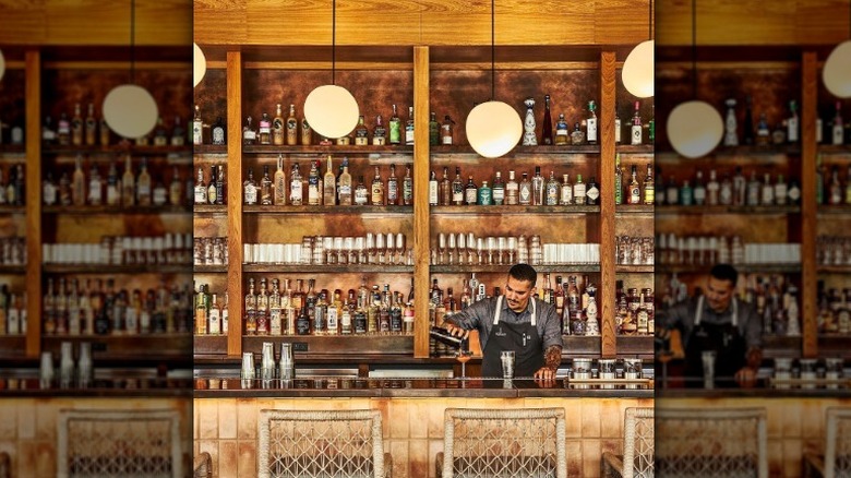 Solbar is a sleek and moody lounge where guests are able to enjoy light bites and craft cocktails. The matte bar top at Solbar offers plenty of space for a few different dishes and some drinks. That said, if you're gathering with a larger group or looking for some extra room to spread out, you can snag a booth by the window or even post up on the recently expanded patio which overlooks the hotel pool.