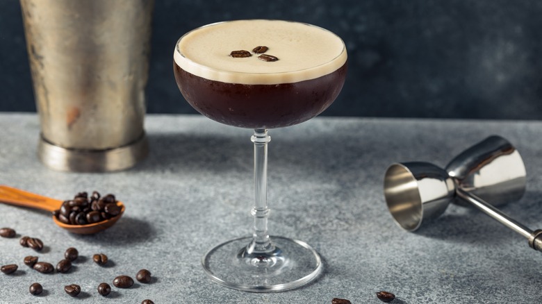 The story goes that a customer sat down at the bar and requested a drink that would energize her ... but also show her a good time. Bradsell obliged by shaking together vodka, coffee liqueur, espresso, and simple syrup, and a star was born. Initially, Bradsell called his creation a vodka espresso, but it was eventually renamed to fit into the trend of falsely calling non-martini cocktails "martinis" in the 1990s (via GQ).