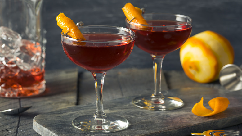 Some riffs on classics earn acclaim as their own cocktails, and others come about as adaptations of those riffs. Enter: the Left Hand. This drink is derived from the Boulevardier, a variation of the Negroni. The Boulevardier was invented in the 1920s by Harry MacElhone, who published the recipe in one of his cocktail books, according to The Bourbon Review. The original cocktail is simply a Negroni made with bourbon instead of gin but has since evolved to include 1 ½ ounces of bourbon, a ¾ ounce of Campari, and a ¾ ounce of sweet vermouth. This is the template Sam Ross used when he eventually constructed the Left Hand in 2007, only he added two dashes of Xocolatl Mole bitters to the mix, per Summit Sips.