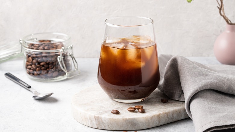 Iced Americanos are often compared to cold brew, and while the two drinks can both involve cold water and coffee, they are slightly different. True coffee aficionados will notice that iced Americanos usually taste more acidic and bitter than cold brew since they're originally made with hot water (via Caffe Nero). And while cold brew can be made by allowing grounds to sit in the fridge with water overnight, iced Americanos require you to whip out the espresso machine — and can be made with ice only, no water needed.