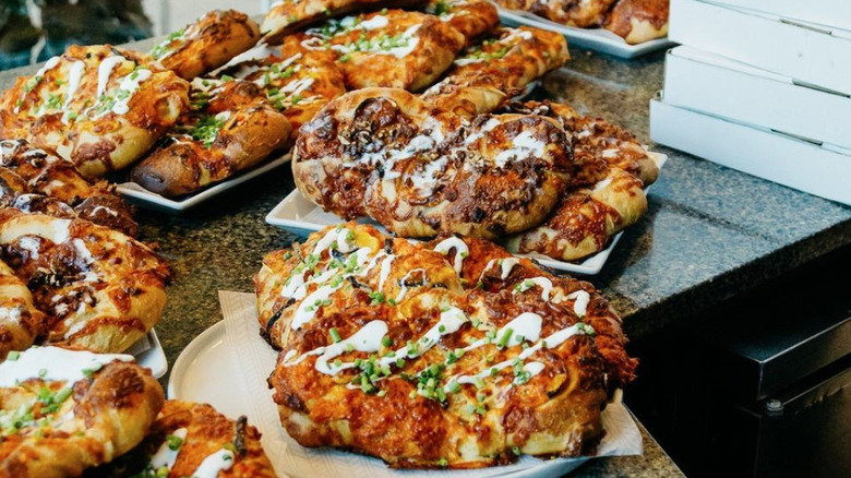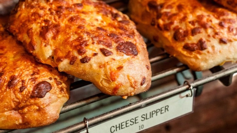 Crafted by hand, cheese slippers are a definite labor of love. Following Spominato's original recipe of house-milled flour, yeast, organic wheat starter, water, and sea salt, The Pitch explains that the ciabatta isn't complete without an abundance of cheeses including (but not limited to) regular shredded cheddar, Alma Creamery smoked cheddar, Tillamook medium aged cheddar, and even Cedar Grove garlic cheese curds.