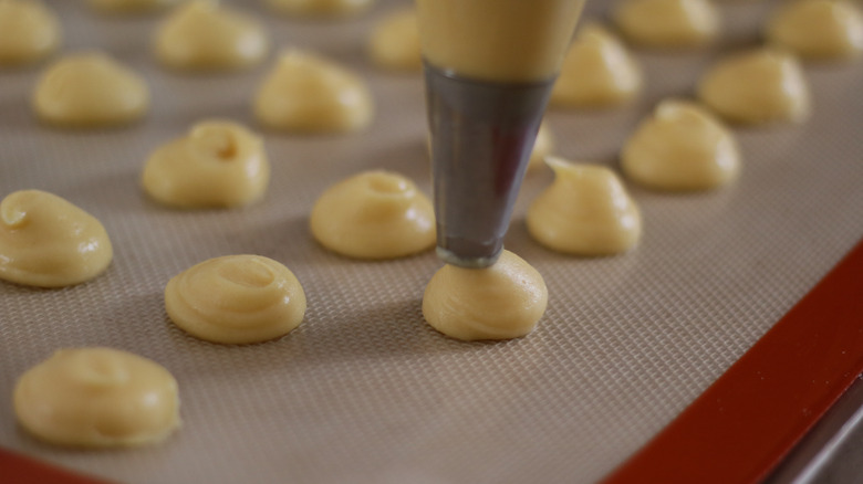 A religieuse starts with pâte à choux (pronounced like "pat a shoe"). Choux is soft and versatile, made with a simple combination of butter, water, milk, sugar, salt, flour, and eggs. Choux lies somewhere between a dough and a batter, and it puffs up into hollow balls with a crisp exterior when baked. Those empty little balls just beg to be filled with delicious flavors, which, in the case of a religieuse, usually means crème pâtissière, or pastry cream, a thick, creamy custard made with starch and eggs. The pastry cream is usually flavored with chocolate, coffee, or vanilla, though other flavors can be found.