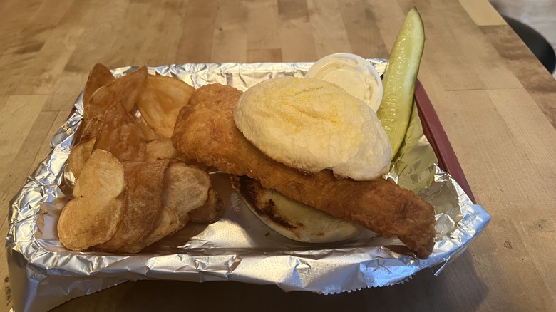 Here, you'll order the classic Fried Cod Sandwich. It comes with a cod patty that gets hand-breaded and topped with melted cheddar along with lettuce and tartar sauce on a tasty and toasty bun. On the side, you'll enjoy fries. Plus, there are three different locations around Wisconsin to find this great bite: Madison, Verona, and DeForest. Like other places in Wisconsin, North South also offers a fish fry that is widely beloved, so if you're looking for something more robust than a sandwich, that may be an excellent option. Plus, your meat-eating friends have delicious smokehouse options at their fingertips. This is definitely a place to meet the needs of many different diets.