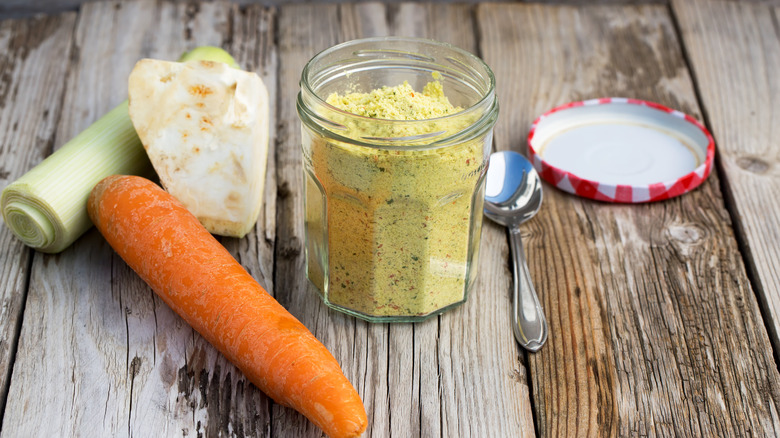 In the same way, a dry soup mix could also serve as a fitting flavor duster. Just make sure your particular soup blend doesn't have any chunks of dried beans or peas floating around in it. Big pieces like these might be delicious when rehydrated in a steamy bowl of soup, but (alas) they won't serve your popcorn quite as well. For popcorn flavoring purposes, Serious Eats suggests using a miso soup mix. A packet of onion soup mix would also work well here — the simpler, the better.