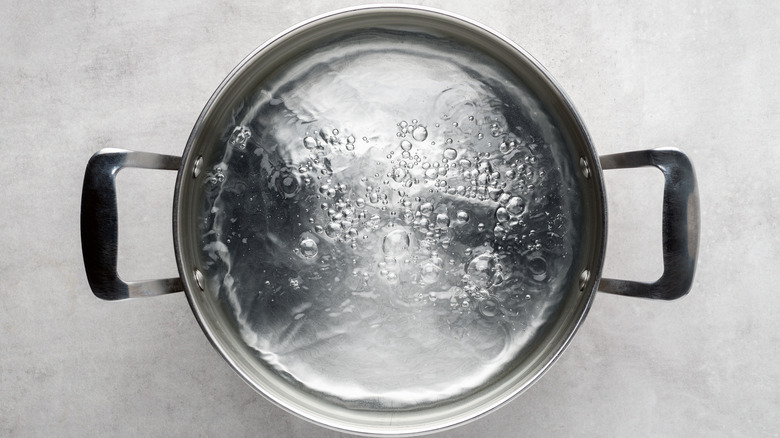 But let's say you're not braving the elements — you're just trying to make some pasta in your kitchen. A wider, shallower pot will create more surface area and bring your water to a boil faster, as will a thinner pot, Always Order Dessert explains. There's also no need to fill the entire pot with water, which could take forever to boil — if you're making one pound of pasta, you only need four quarts of water, according to Eataly. And if you live in a place with a higher altitude, you'll want to adjust your boiling process according to your elevation.