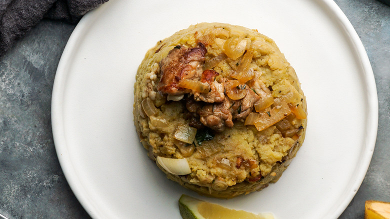 While there are variations of mofongo like this simple shrimp mofongo recipe, the base for the dish is the same. According to The Spruce Eats, the basic recipe for mofongo contains green plantains, garlic oil, and fried pork rinds, known as chicharrónes. What makes the dish special, however, is how it's assembled.