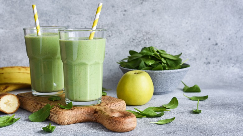 Pistachios and pistachio butter are packed with nutrients that make them great additions to a morning smoothie. According to Nutrition Value, a 32-gram serving of the Horizon Marketing brand pistachio butter contains 3 grams of dietary fiber, 6 grams of protein, and 1.4 milligrams of iron (8% of recommended daily value). That's an impressive amount of nutrients for a scoop of pistachio butter. When blended with other ingredients (think potassium and fiber-rich bananas, antioxidant-dense berries, and vitamin-heavy greens like kale and spinach), pistachio butter not only improves taste but also increases the nutritional value of a smoothie.