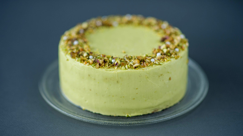 Speaking of frosting, the applications for pistachio butter in desserts certainly don't end there. You can absolutely switch out pistachio butter for other nut butters in baked goods. Since its consistency is similar to that of peanut butter, almond butter, sunflower seed butter, and others, pistachio butter can be swapped in equal parts to other nut butters in most every recipe. You'll still get that nutty, slightly-sweet flavor, but with the green tinge and rich, earthy taste of pistachios.