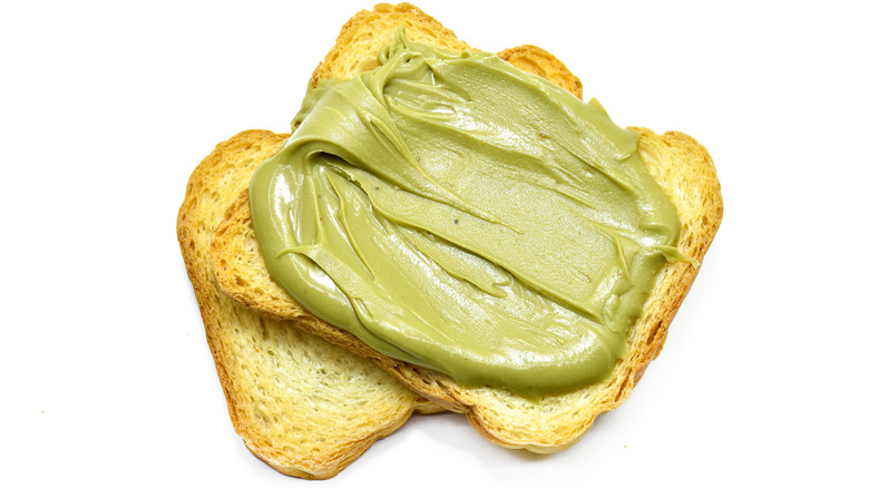 In an era rich with nut and seed butters of all kinds, pistachio butter shouldn't be overlooked. Pistachio butter is incredibly versatile, and its potential applications to the culinary arts are not to be underestimated. Its consistency — usually pretty smooth and comparable to butter made from almonds or cashews — allows it to be swapped in for most other nut butters quite easily. Just as there are many unconventional uses for peanut butter, pistachio butter can be used as a tasty and unusual addition to sauces, sandwiches, smoothies, and many other food items. While applications range far beyond this list, we've outlined the absolute best ways to use pistachio butter.