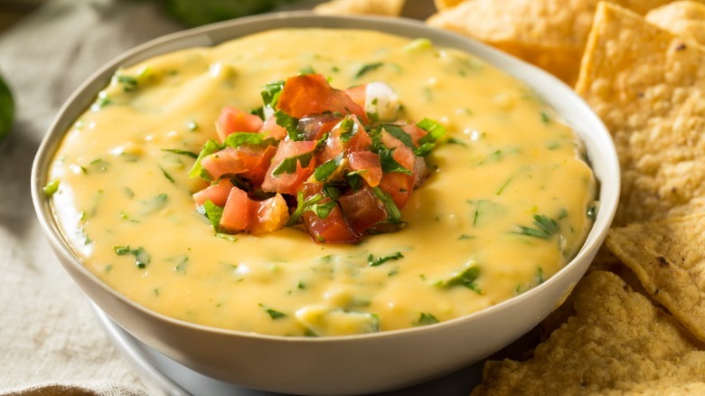 Like so many entries on this list, queso is another food that we're crazy about but wouldn't order. Per Eater, queso dip and warm tortilla chips are almost the mascots for Tex-Mex foods, and for good reason. The melty cheese infused with chile peppers and the crisp tortilla chips is a combination to dream about. However, they might be worth passing over the next time you go to your favorite Mexican restaurant if authentic food is what you're after.
