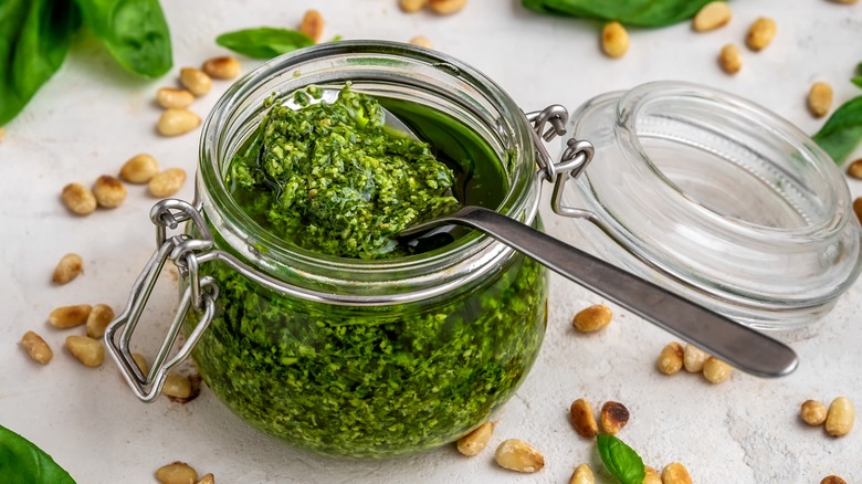 When it comes to herbs, basil is definitely among those we favor. According to MasterClass, this green, leafy flavor enhancer adds both peppery notes as well as a touch of pungent sweetness to the recipes it touches. They go on to share that basil is actually part of the mint family and that there are more than 60 different varieties of this herb. It is often used to make a pesto that can be used as a spread on a sandwich or a sauce for pasta. In addition, it is an essential part of a caprese salad, pairs well with fish, and can add a subtle umami to soup. Fresh basil can also impart its aromatic, savory taste to a yummy cocktail or mocktail.