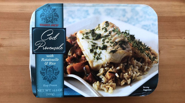 When you think about freezer meals, you probably don't think of very sophisticated dishes. But at Trader Joe's, you might just find a frozen meal that makes you feel like you're eating at a nice restaurant. That's certainly the case when you get your hands on Trader Joe's Cod Provençale with Ratatouille and Rice. This meal is especially well-put-together, and it's exactly the kind of microwavable meal we'd want to take to work with us. It feels healthy, and it's easy to make on the go, as long as you have access to a microwave.