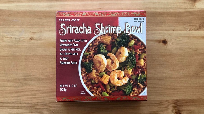 We're starting out with our absolute least favorite frozen seafood entree from Trader Joe's that we tried: the Sriracha Shrimp Bowl. We wanted to love this ready-made meal so much because it's incredibly easy to heat up, which makes it the ideal lunch on days when you just don't have time to cook something more elaborate. Unfortunately, we just weren't impressed when it came to the flavor. Despite the addition of sriracha to this meal, it just doesn't have the spiciness we want from an ostensibly spicy dish. That may not be a problem if you're not a huge spice fan, but most people who pick up a sriracha-heavy dish are going to want at least a bit of spice.