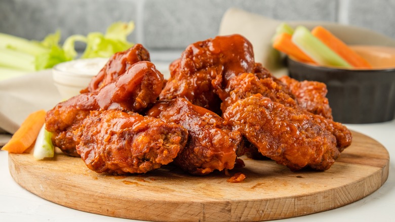 His recipes for Buffalo Chicken Wings and Gyoza Pork Pot Stickers are both available on Food Network. If you opt to make the wings, Irvine recommends giving guests control of the sauce. "I never coat the wings, because I want you to coat the wings the way you want them, so we'll have the wing sauce on the side," he told Tasting Table in an exclusive interview. And while Kim may be using Irvine's own recipes, she'll likely spice things up with an addition of her own: sriracha sauce. As Irvine told the Star-Tribune in 2015, "She's a Sriracha Queen. She loves spice more than I do."