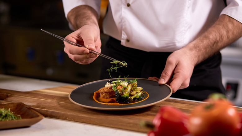 Most dishes involve elements made using a variety of cooking styles. A given plate of food might have a piece of grilled meat, sauteed vegetables, a puree and a sauce, plus garnishes. It wouldn't make sense for one cook to run from the grill to the saute station and back again trying to assemble all the components of one plate. To create food most efficiently, each element of a dish is assigned to a certain cook under the brigade system. The grill cook, or rotisseur, would handle the grilled meat, the saucier would prepare all the sauces and purees, and the entremetier would cook the vegetables. Each cook passes the pot or pan of food to the pass where the sous chef assembles the final dish.