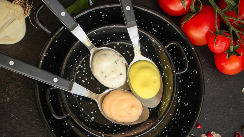 All four of these sauces in their modern forms are derivatives or "daughters," of mother mayo. But it should be noted that aioli in its original form — is not a derivative of the creamy condiment. It's something else entirely (though still emulsified). Aioli's roots began sans egg and lemon. But the importance of adding egg to the emulsification process in aioli's current incarnation cannot be understated.