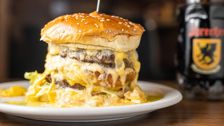 Stuffed burgers are like your classic burger but with a significant upgrade, and the limit to what you put in your burger only ends with your imagination. Personally, we love elevating this experience by stuffing a grilled burger with brie and fig. This cheeseburger is undoubtedly one you won't soon forget, though you may wonder how it could possibly be related to the standard ketchup, mustard, lettuce, and onion kind. To prepare these burgers, put the brie and fig preserves on top of one burger patty before placing another patty right on top. Seal the edges of the now bigger burger together and cook that hamburger however you'd like. It's thick enough to withstand a grill and would also do marvelously on a cast iron skillet.