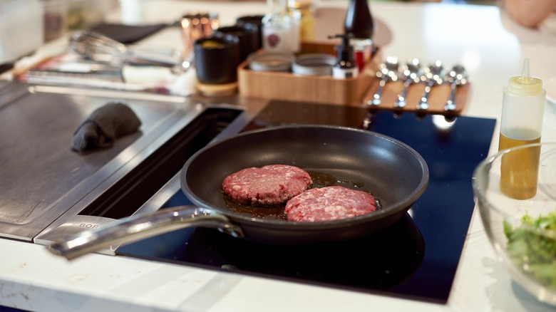Instead, use your cast iron to create a burger that efficiently retains its juices without needing to be an inch thick. While many people enjoy thick burgers, they can be challenging to eat, so pan-frying allows you to create a burger that isn't quite as thick. Plus, you can use your cast iron pan on your stove top or grill; this way, you still enjoy that grill experience while preparing a perfectly juicy burger that's crispy on the outside. If you just use a grill for cooking burgers, you'll get excellent grill marks but miss out on that tasty sear.