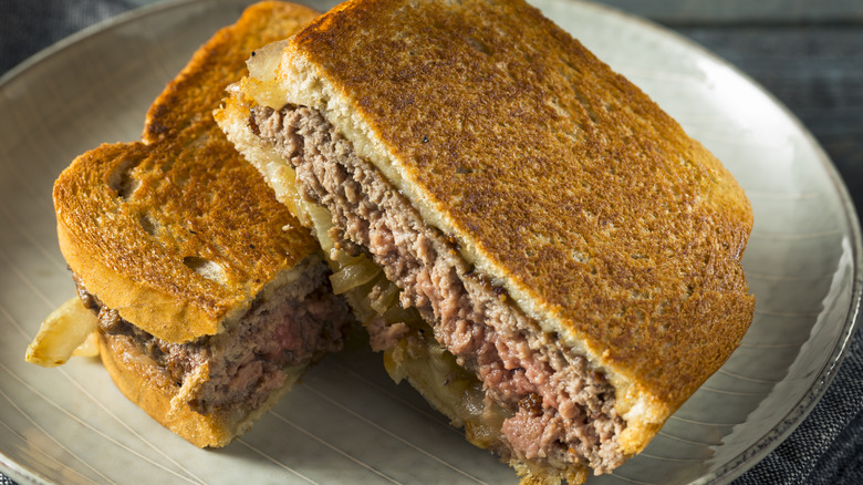 To cook up a hamburger that is different from a typical burger and offers a whole other flavor profile, whip up a classic patty melt. A true patty melt should have rye bread, Swiss cheese, and sauteed onions. On the side, we recommend a healthy serving of French fries.