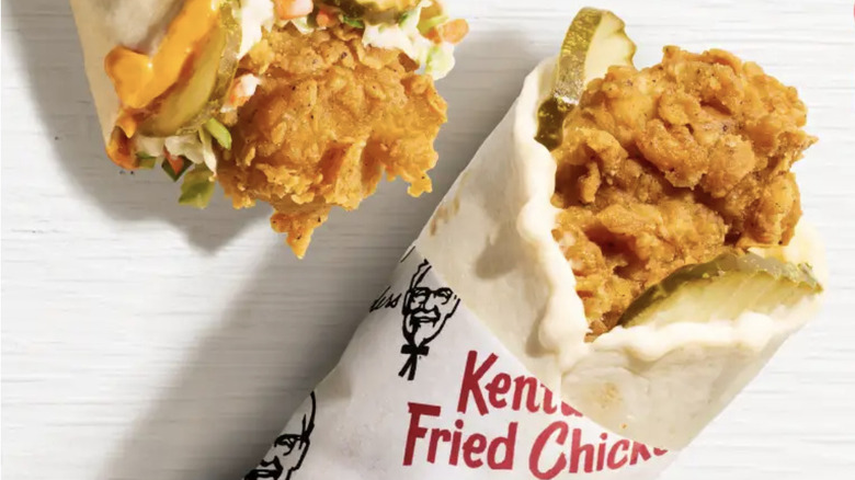 As the so-called "chicken sandwich wars" continue apace, KFC is keeping up by introducing several more variations of its super-popular Chicken Sandwich, originally added to its menu in February 2021. Amid record sales of that sandwich, the chain announced today (via Nation's Restaurant News) that it's testing two new variations of the sandwich in Tampa, Florida to start — and also recently introduced KFC Chicken Wraps nationwide — all in an effort to keep chicken sandwich lovers happy and well fed.