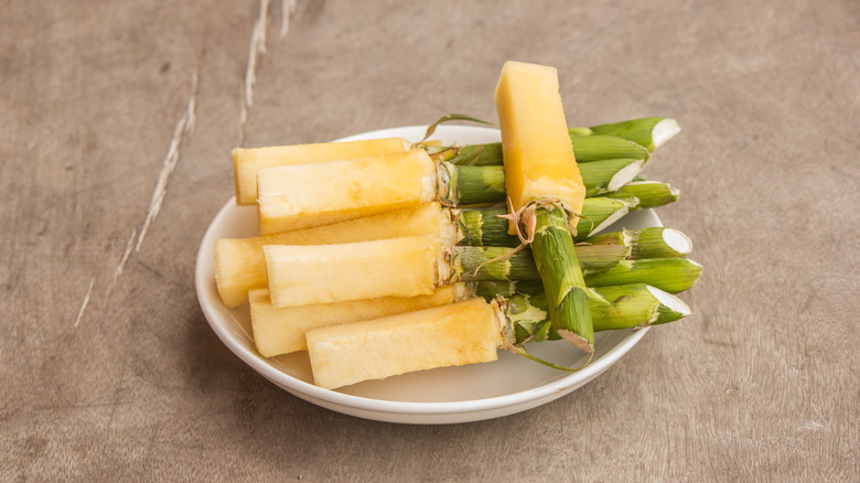 We all know that a lot of food can go to waste by being left too long in the fridge or pantry, but what about the food that gets wasted because it's not conventionally seen as edible? A lot of fruits and vegetables have cores, seeds, and peels which might not be great to take a bite out of but could be repurposed to create other ingredients in our kitchens. Apple cores, peach pits, and banana peels are all common culprits, however, one of the largest pieces of fruit regularly going to waste is the pineapple core. As Dole, one of the largest providers of pineapples in the world — and creator of Disney Parks' infamous frozen pineapple treat – notes, while the core of the pineapple is "harder and more fibrous" than the rest of the fruit, it is still filled with vitamins and minerals and is completely edible, it just needs a little more preparation to be put to full use.