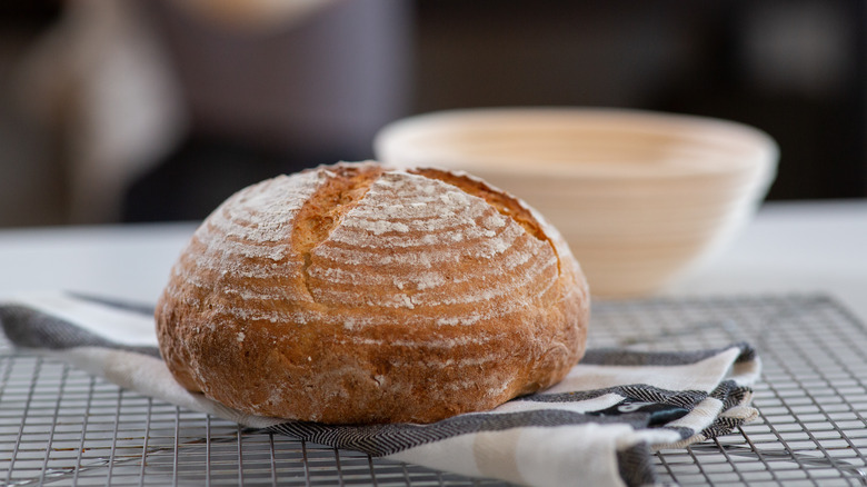 Over the past several years, the widespread discovery of and fascination with sourdough bread has been nothing short of a phenomenon. According to CNBC, as of 2019, this particular baked good is included on over 14% of all restaurant menus. Additionally, its market value grew from $298 million to $2.4 billion between 2014 and 2018. This massive and sudden growth comes despite concerns with the number of additives consumers find in some manufactured bread. It turns out, however, that the best loaves do not include anything other than flour, water, salt, and yeast, and you most certainly do not have to go to a bakery or restaurant to enjoy some. In fact, preparing artisan-style sourdough bread is far more accessible to home bakers than one might think.