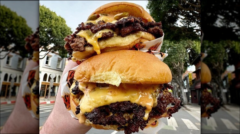 Heavy Handed is one of the newest restaurants to pop up on Santa Monica's bustling Main Street food scene, serving low-fuss smash burgers, fries, and other casual bites with bold flavor. The Heavy Handed menu is concise and simple, allowing the burgers, fries, and classic soft serve to remain the center of attention. The burgers boast a balanced blend of ground short rib beef and marbled fat, cooked alongside grilled onions to create the ultimate flavor and a supremely juicy burger. The patty is then topped with house-made butter pickles, melted American cheese, and signature sweet, tangy, smokey Heavy Handed sauce and served on a house-made bun.
