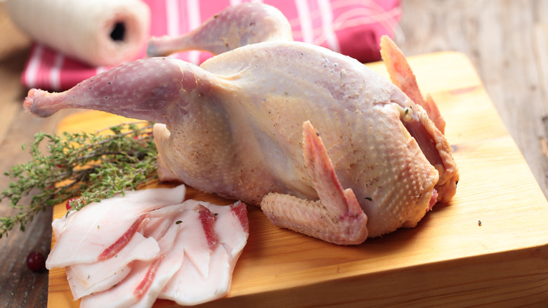 The two primary sources of game meats include animals that are hunted because they can't be grown in captivity, like moose and bear, and those that are farm-raised but were once free-range, such as pheasant and quail. There are key differences between the taste and texture of domesticated meats and game meat. Game meats are typically leaner than standard domesticated meats — like chicken, turkey, beef, and pork — because wild game can range longer distances and eat a more "natural" diet. Game meats also have a more intense flavor that folks describe as "gamey," — meaning that the flavor tastes borderline sour because of the animal's foraging behavior during its lifetime.
