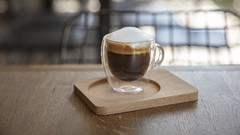 Not to be confused with a cortado, macchiatos are one or two shots of espresso topped with a small dollop of milk foam. That's it. In Italian, the word "macchiato" translates to "stained" or "marked," says Willhoff, which is indicative of the small "mark" of foam that dots the espresso shot. With a macchiato, you won't find the multiple inches of milk foam that you'll see in a cappuccino. Some folks even order their macchiato as a "dry cappuccino." Some baristas choose to assemble their macchiatos by scooping that delicate milk foam directly out of the steam pitcher using a teaspoon. Pouring is perhaps too gross a mechanical action for such an understated beverage.
