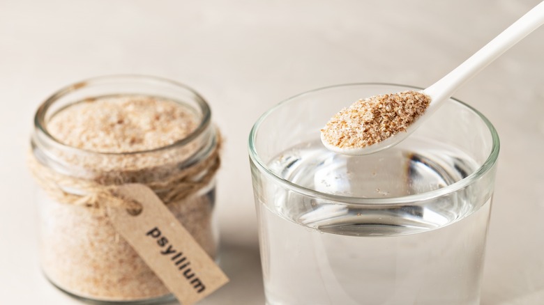 "Psyllium husk" refers to the outer seed coat of several species of a leafy plant in the genus Plantago, commonly known as plantains (but completely different from the "cooking banana" plantain). Like flax and chia seeds, psyllium seeds are rich in dietary fiber. The major commercial use of psyllium husk is in digestive health supplements like Metamucil, but it can also be used as a binder in vegan baking.