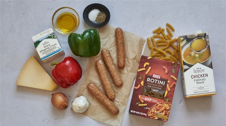 What you need for chicken sausage and bell pepper pasta
