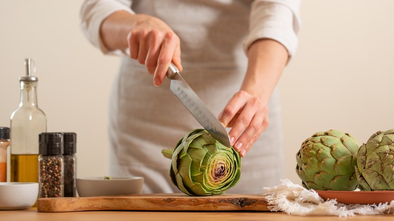 Brown can cook artichokes. He even did a "Good Eats" episode on the vegetable, titled "The Choke is On You," in which he doled out tidbits of information about the strange-looking artichoke, which is related to the sunflower. But he doesn't particularly like to cook them — and this isn't the first ingredient that has plagued Brown; He famously wrestled with a meaningful way to approach the avocado, eventually landing on its fat content and ability to enrich even sweet recipes like ice cream and frosting as a novel way to present the bumpy-skinned fruit.