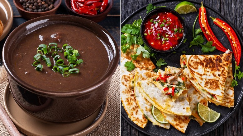 16. Black bean soup and a chicken quesadilla
