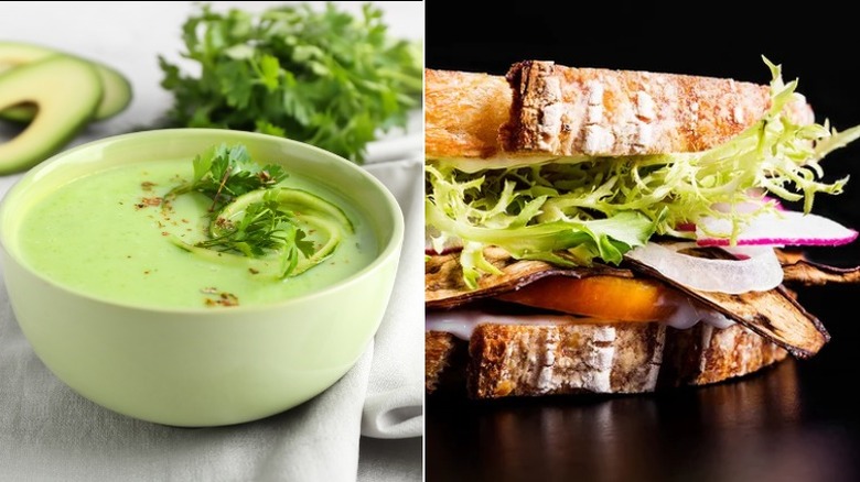 7. Cold cucumber and avocado soup and a vegan eggplant BLT