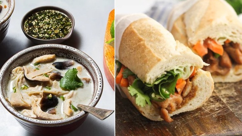There's really no limit to the kinds of soup and sandwich combos you can come up with — including some that are a little more striking. For something that keeps the spirit of the meal but incorporates less common flavors, try putting together a tom kha chicken soup with a basic banh mi sandwich.