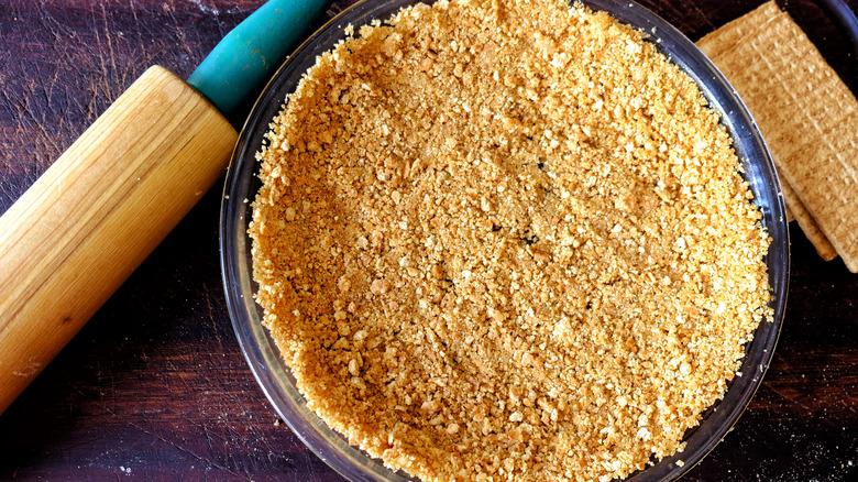 If you love the taste and texture of crumb crusts but prefer a more even result, then reach for a second pie plate the next time you bake. Once you've loosely patted the crumbs into place with your hands, stack a slightly smaller pie plate on top — disposable aluminum ones work great for this — and press down on that with your hands. The evenly distributed pressure will ensure that the crumbs press into place, creating a more uniform layer that's sure to delight in a banana cream pie, key lime pie, or cheesecake.