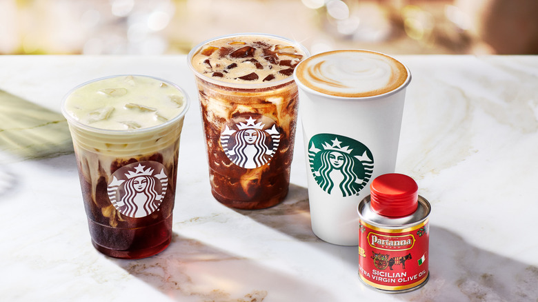 It may be a credit to the company, or a gimmick, depending on who you ask, but Starbucks has never stopped innovating with unusual drinks and flavors. From more basic ideas like red velvet and chile cocoa, to indescribable concepts like the unicorn Frappuccino, the international coffee chain has often made waves with bold, attention-grabbing coffee concoctions. The misses come as frequently as the hits, but there is no doubt a big part of Starbucks appeal is that it's the only place you can easily grab something like a sugar cookie latte, and when they hit, they hit. Still, an olive oil-infused coffee is a pretty big swing, and it lacks the obvious appeal of a s'mores or honey and oat milk flavor. So what is this new drink and when can we get our hands on it?