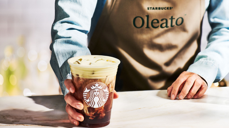 Starbucks' new line of olive oil-infused beverages bears the name Oleato and will feature a variety of drink options. According to a company press release, the three drinks in the main lineup are a latte, a Golden Foam cold brew, and an iced shaken espresso. The iced espresso and cold brew drinks will see the olive oil infused into the dairy parts of the drink — a foam in the cold brew and oat milk in the espresso. The latte will have the olive oil directly in the coffee before being topped off with steamed oat milk. These new drinks will be joined by the option to add a spoonful of olive oil into some existing drinks or top a drink with the oil-infused cold foam.
