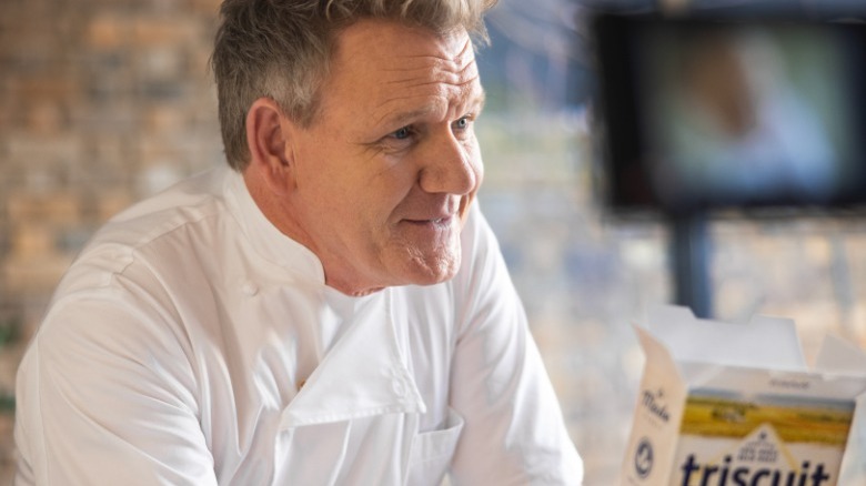 Ramsay doesn't pander in products much; he's got his own culinary empire to promote, filled with risottos, Beef Wellingtons, and Yorkshire puddings. Despite that, soon, when you turn on your TV for your go-to Gordon fix — "Master Chef"? "Hell's Kitchen"? "Next Level Chef"? There's plenty to choose from — you'll get more than you bargained for. Stick around for the commercial break to see the culinary legend munching on a Triscuit or two. In an exclusive interview with Tasting Table, Ramsay did his best to dust off the crackers from where they've been hiding in your cabinet and turn them into the keys to a crave-worthy canapé. He also went down the scrambled egg rabbit hole, got into the weeds with what makes a really great steak, and leveled with us about his relationships with fellow celeb chefs.