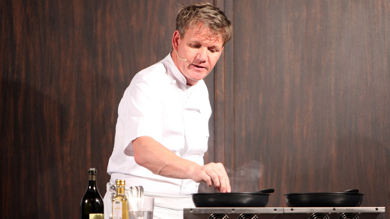 If ever there were an icon in the culinary world that could go by one name — like his "dear friend" Adele (his words, not ours) — it's Gordon Ramsay. Unlike his friendly neighborhood arch-rival, Bobby Flay, his name is not yet plastered on one of Hollywood's pebbled heavenly orbs. The 17 Michelin stars he has accrued across his career, however, sing for themselves.
