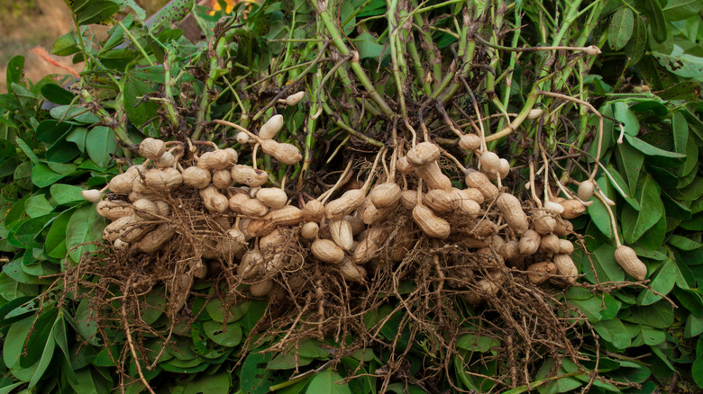 Peanuts are beloved for their creaminess, flavor, oil, and crunchiness. But do you know how they grow? Unlike their name, peanuts actually grow below ground in a manner similar to potatoes. Technically considered a legume, peanuts grow underground fanning out from the main stem, attached by thin little roots that hold them to the mother plant.