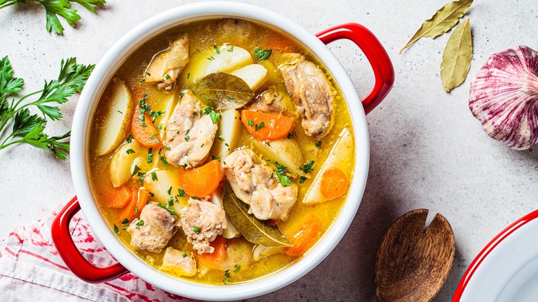 Boulud told Yahoo! that he prefers to make the broth himself because he likes to have a combination of vegetables, mixed with the right texture. He explained that each time he makes a soup it's different because he has no specific recipe that he consistently follows. The world-renowned chef said he enjoys walking around the kitchen and putting "all types of things" in it. Some of his favorite ingredients to add are fresh herbs, grains, spinach, meat, or seafood. Boulud also revealed that one of his favorites to make is moqueca soup. The Brazillian fish stew features fish or shrimp, peppers, and coconut milk, which is commonly served with rice.