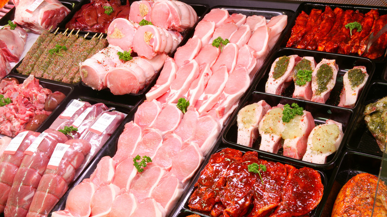 While the USDA classifies pork as red meat, its grading system is closer to chicken. The two grades pork can receive for quality are "acceptable" and "utility." Like Grade A chicken, only pork that's graded acceptable is sold in stores, while the utility grade is used in other processed products like pet food. Though subject to all the standard safety inspections, pork's grade quality comes down to little more than the proportion of lean meat to fat and bone. There is a second system for how pork is classified, tied to the size of the pig and whether it is male or female, though this still only speaks to the ratio of fat to meat and isn't all that relevant to consumers.