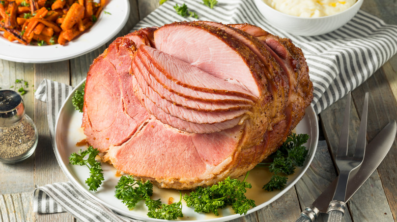 Massive spiral-cut hams are another holiday centerpiece that inspire days of leftover meals. Much like turkey and corned beef, there are always sandwiches in a honey-baked ham's future. Or you can reheat slices of ham either in a skillet or in the oven.