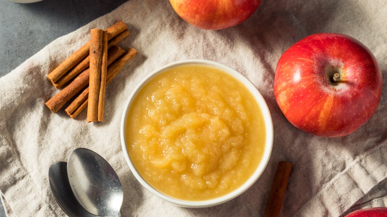 Regardless of how you're using applesauce, it's best to go with an unsweetened variety because sweetened apple sauces contain sugars that will disrupt your crumb structure. To prevent it from crumbling apart, make sure your applesauce cake is allowed to cool for 10 to 15 minutes before cutting into it.