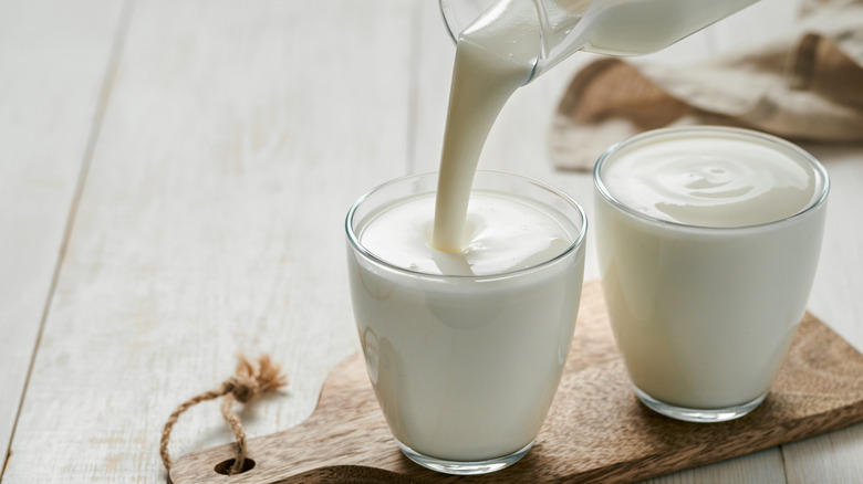 Similar to yogurt or sour cream, buttermilk can elevate a boxed cake mix by making it richer and denser, while balancing out the sweetness with a bit of acidic tang. Buttermilk can be used to elevate just about any cake mix, from angel food to devil's food. However, buttermilk is crucial to any spice cake recipe. The acidic tang of buttermilk plays perfectly with the spicy sweetness of this cake. When done right, both flavor profiles complement one another to make spice cake more than some of its parts.