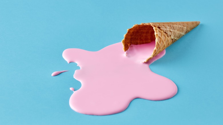 Parents of young children know how maddening it can be to scoop out an entire bowl of ice cream for your child, only for them to eat a few spoonfuls and allow the rest to turn into ice cream soup. Try as you might, there's no way to reconstitute ice cream once it's melted. Adding melted ice cream to boxed cake mix isn't just a great way to elevate your cake, it's also a great way to reclaim melted ice cream and minimize food waste. Best of all, it simplifies the recipe for a boxed cake mix. Because melted ice cream contains fat and water, you only need to add eggs to complete the recipe.