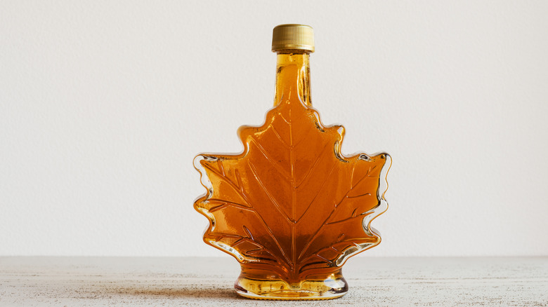 Maple syrup is graded based on its color and flavor. Before 2014, it was given letter grades ranging from 'A' for the light syrup to 'C' for very dark syrup that was only sold commercially. Because many people found these letter grades confusing, maple syrup is now graded using descriptors, ranging from Fancy for the lightest in color and flavor, to Very Dark and Strong Flavor. When selecting maple syrup to elevate a boxed cake mix, go with amber color for a solid flavor that isn't overpowering. For a standard cake mix recipe that calls for one cup of water add ½ cup of vegetable oil, substitute ½ cup of maple syrup, ⅔ cup of water, and ⅓ cup of butter, oil, or other fat.